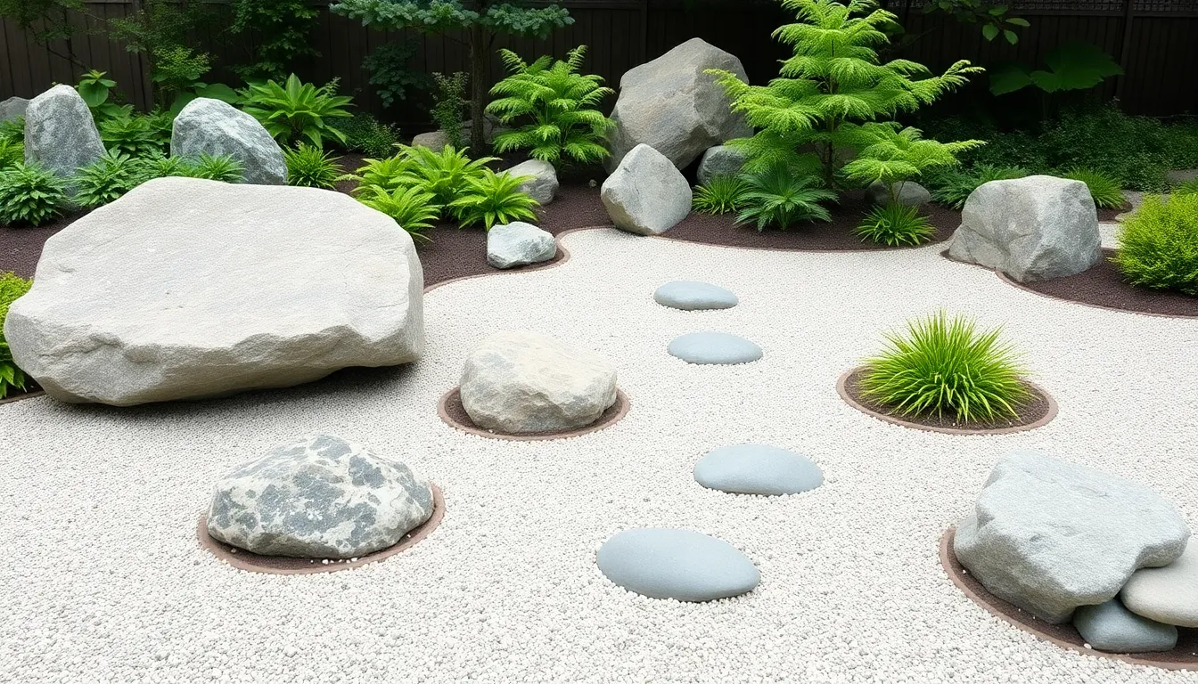 Rocks provide a grounding presence in Zen gardens. They symbolize mountains and evoke a sense of permanence. Placing stones in groups of threes enhances harmony and visual interest. Varieties like boulders, pebbles, and slate each contribute unique textures. Arranging larger rocks near smaller ones establishes depth and balance, while careful positioning draws the eye and emphasizes natural beauty.